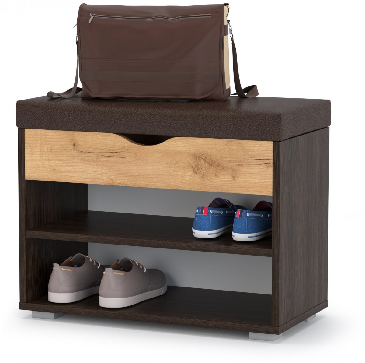 Тумба для обуви Лайт 08.57, цвет венге/дуб крафт золотой/тёмно-коричневая искусственная кожа